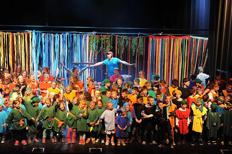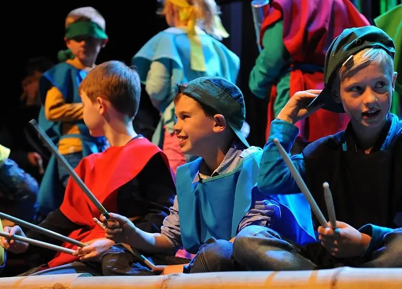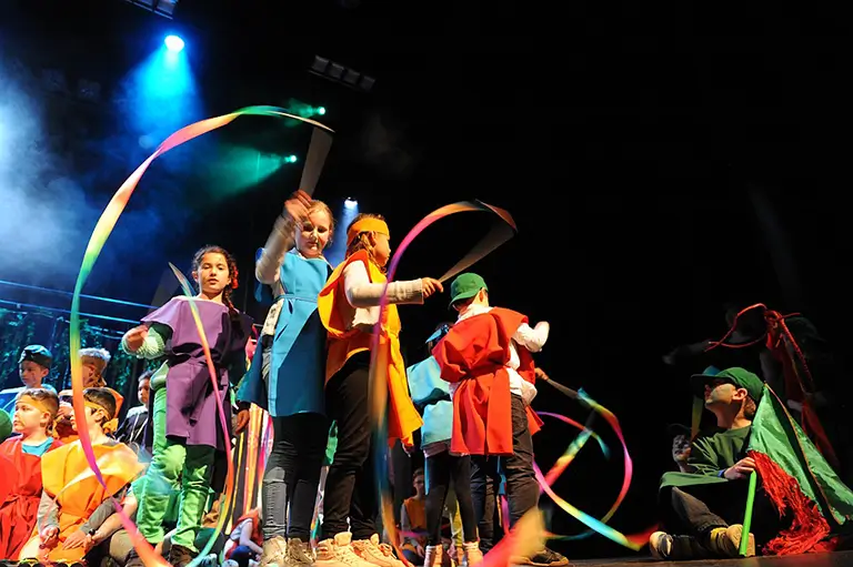 In de ochtend volgt iedere groep een eigen workshop rond een continentaal thema. Gedurende de dag kunnen de leerlingen met onze suggesties uit het draaiboek iets maken voor de voorstelling. En dan… spot aan! In de middag of avond presenteren we samen een spetterende eindshow waarin alle talenten stralen op het podium.